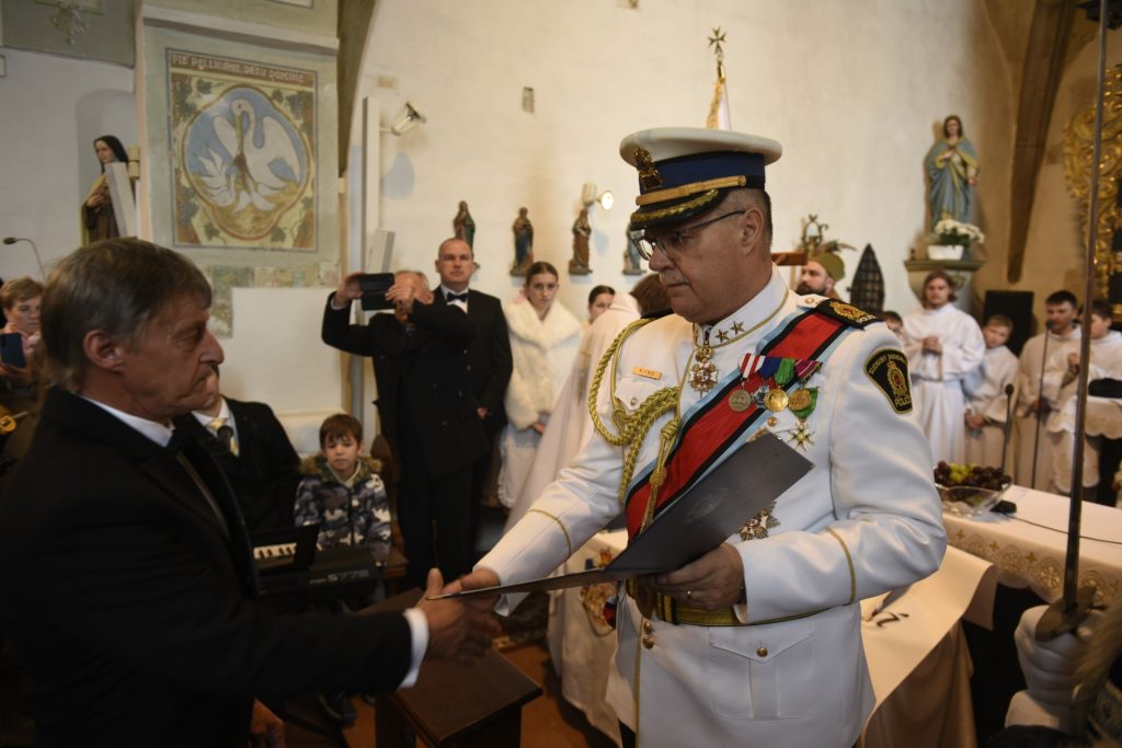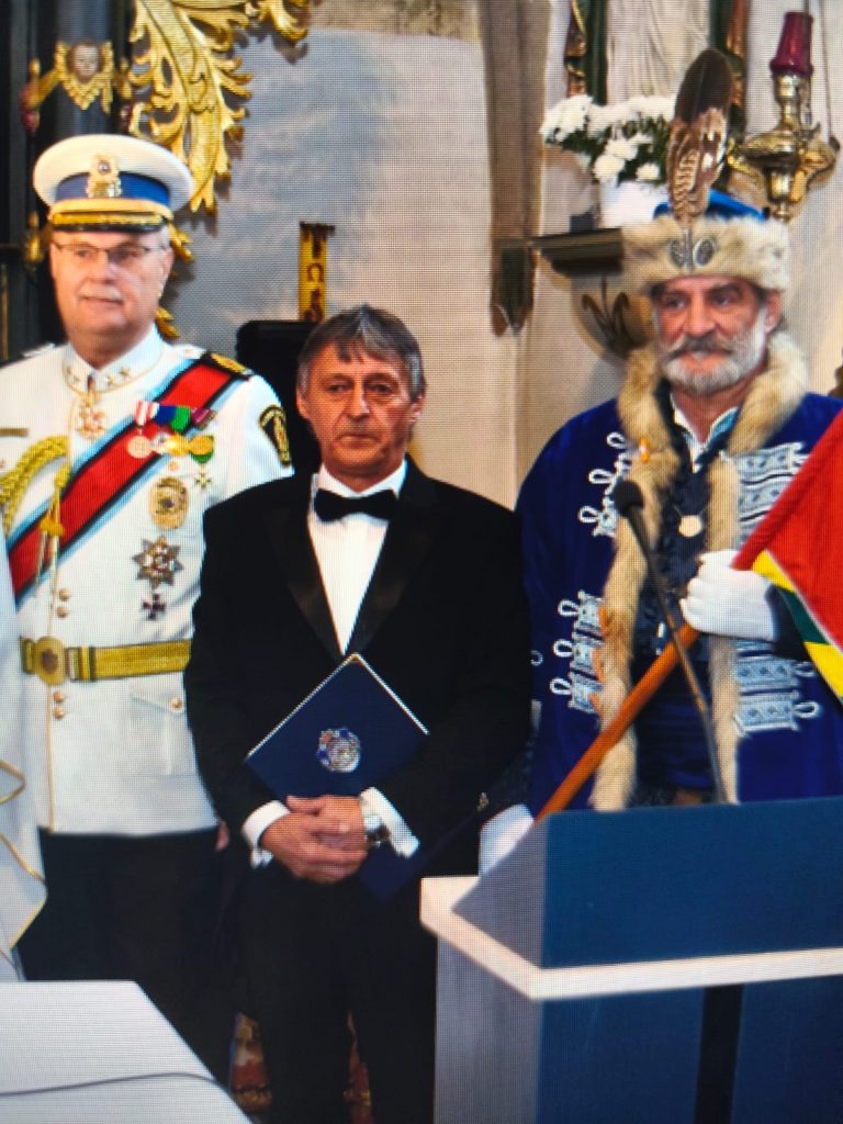 Dlhoročná starostlivosť o Sans Souci ocenená pasovaním predsedu OZ Ondreja Frankoviča za rytiera Rádu sv. Kataríny z hory Sinaj.