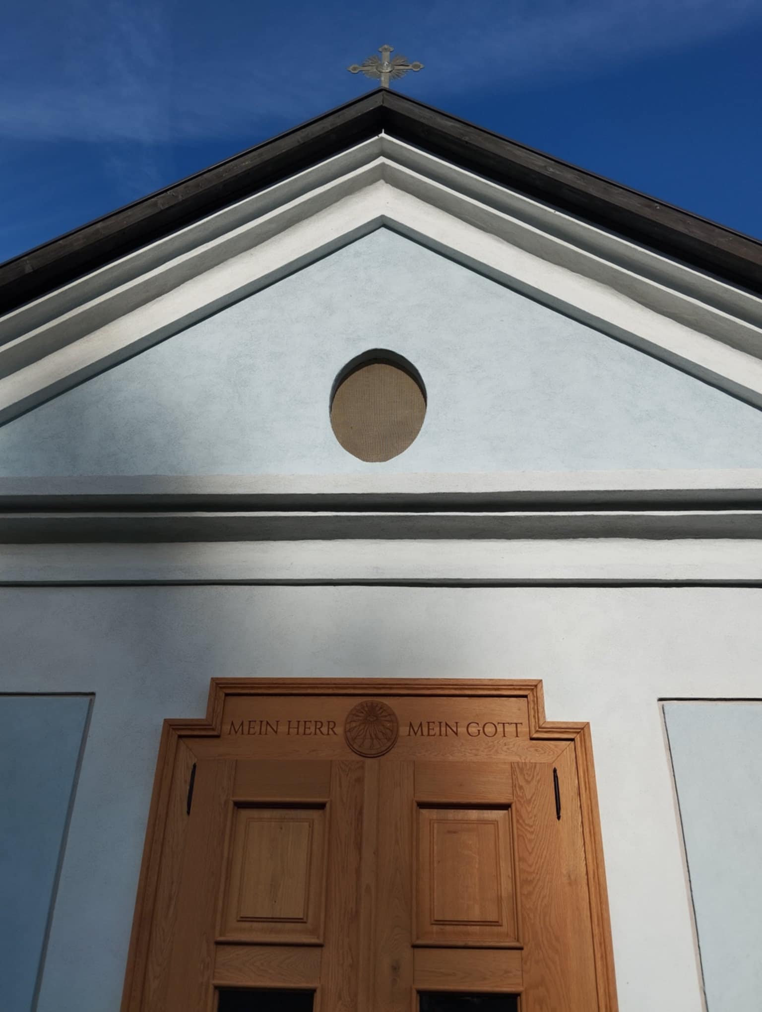 Cez prierez nad dverami kaplnky sa prediera slnko a jeho lúče 5.11.2024 o 12:00 osvetľujú priamo kríž na oltári.